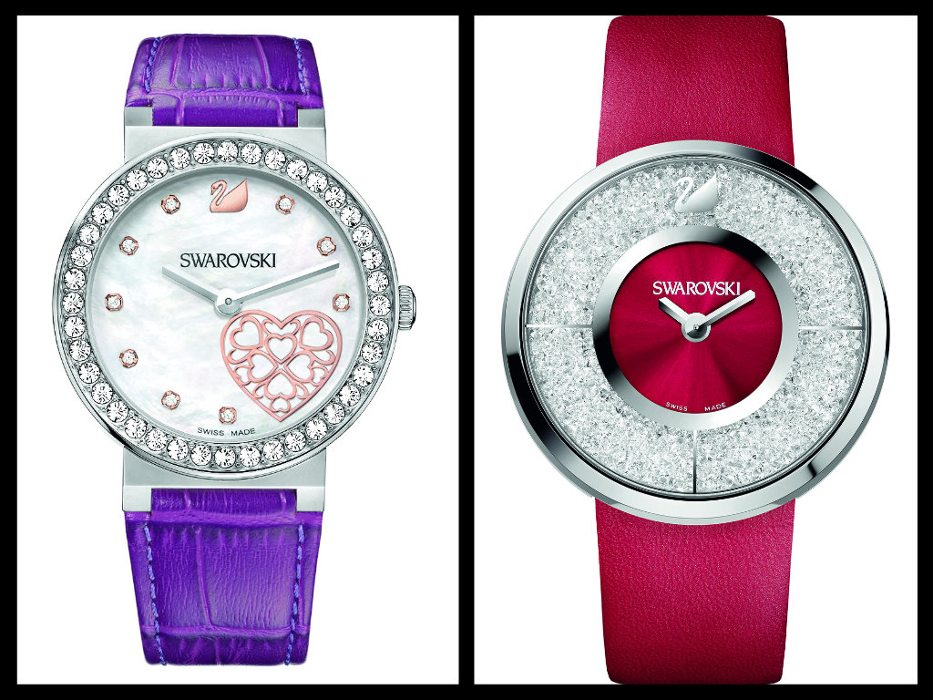 Nel campo fashion Swarovski non ha dedicato al 14 febbraio un orologio speciale, ma i due che segnaliamo sono più che indicati per far felice una donn a giovane (ma non lo sono tutte quando si parla di amore?). Il Crystalline Red incastona 800 cristalli Cry sulla cassa in acciaio, ø mm 40, con la corona sul fondello; sul quadrante del Citra Sphere, cassa ø mm 38 e cinturino fucsia, un decoro emblematico; entrambi hanno movimenti al quarzo.