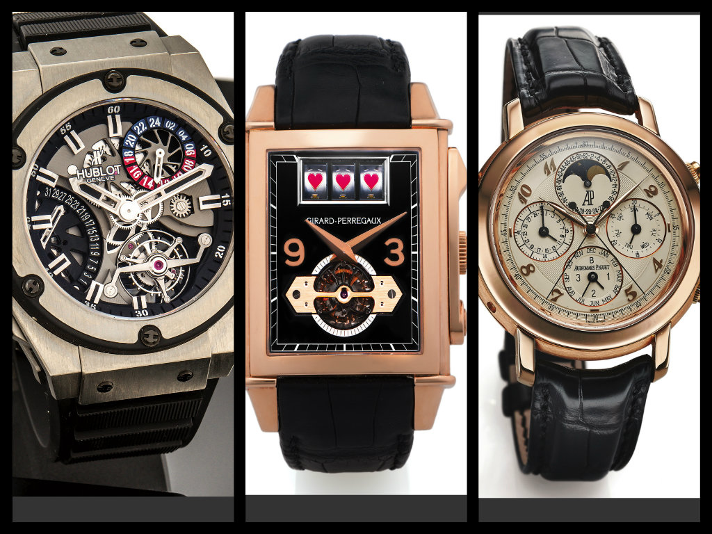 Hublot King Power Zirconium, Girard-Perregaux Jack Pot tourbillon e l’astronomico Audemars Piguet Jules Audemars R.M.cronografo rattrappante QP e quadriennio