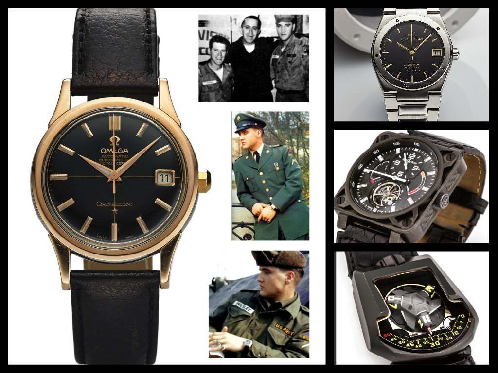 Omega di Elvis Preslie, a lato IWC Ingenieur automatico 500.000A/m; Bell&Ross BR01 tourbillon; Urwerk Altin Twins turbine