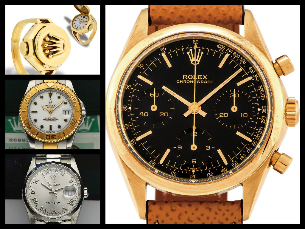 In quanto ai Rolex della foto sotto, curioso l’anello segreto Ref. 8655 Precision in oro, stimato $ 6/8 mila e battuto a $ 10.000; interessante il Day-date in platino REF.18206 del 1994, stimato 18/24 mila dollari e aggiudicato a 21 mila; ci sono state anche quotazioni abbordabili come per lo Yacht Master middle size in acciaio oro del 1997, stimato $ 4/6 mila e battuto a $ 4.750, mentre il cronografo Ref.6238 Pre Daytona in oro 14 kt, prodotto negli anni Sessanta per il mercato americano, è stato fra i dieci Top Lot, con $ 201.750.