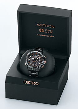 First picture is for Astron chronograph with 10 diamonds on dial, perhaps a tribute to women who love nice watches, but the second one (both in limited edition: 1.000 and 3.000), is a black one. Like the first Astron Solar GPS time they are controlled by GPS system, but titan case is smaller, ø 45 mm, with a new electronic crown and ceramic bezel, chronograph 1/5″ up to 6 hours.