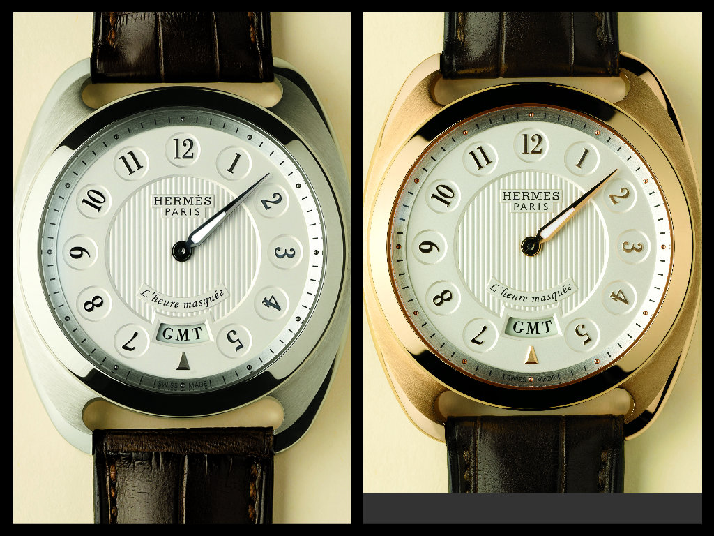 Iniziamo proprio da quest’ultimo con il Dressage Heure masquée, un’ora che potrebbe anche definirsi nascosta e continua la filosofia dell’Arceau Le Temps suspendu. Il tempo può diventar di nostra proprietà, da gestire a piacere. La lancetta delle ore è nascosta da quella dei minuti; per vederla basta premer il pulsante nella corona; appare per pochi secondi comunque sufficienti; d’altro canto l’ora è ben presente nel nostro orologio biologico, sono i minuti che sfuggono.