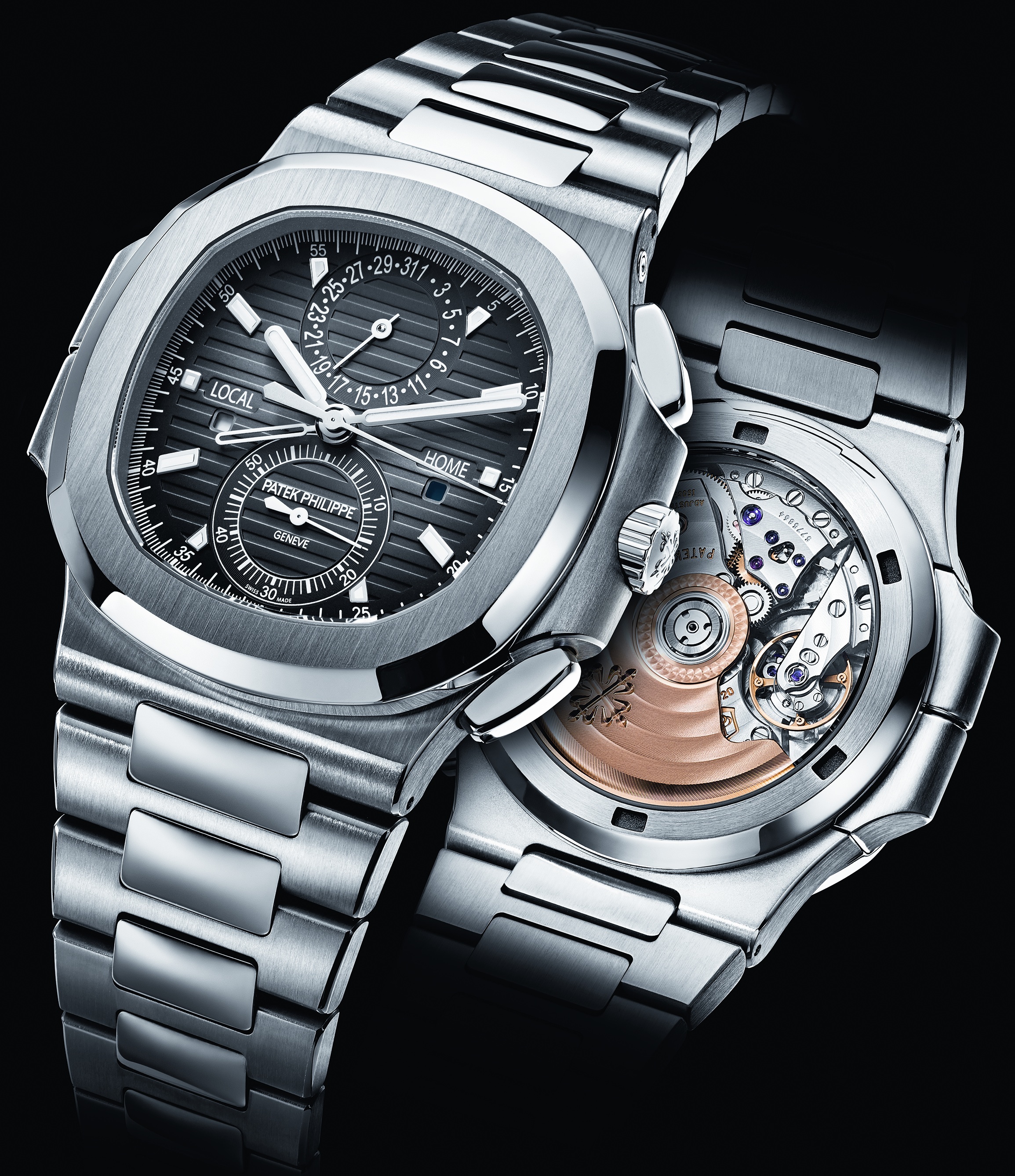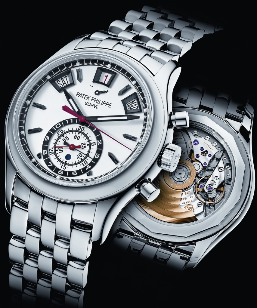 Nel 2006 questo modello fu presentato con la cassa in platino e poi in oro, adesso c’è l’acciaio, che sostituirà tutte le precedenti versioni; in acciaio anche il bracciale, nato nel 1997 con maglie in oro. Patek Philippe impiega l’acciaio per le collezioni sportive (solo un paio le eccezioni). Quadrante nero ebano e opalescente argenté con dettagli rossi, Il movimento è il Calibro cronografico fly-back integrato Patek Philippe CH 28-520 IRM QA 24H, calendario annuale, indicazione riserva di carica e giorno/notte.