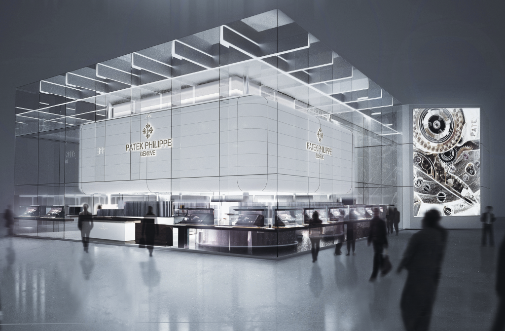 La struttura di vetro ideata dall’arch. Ottavio Di Blasi, occupa una superficie di 630 mq (con i tre piani arriva a 1500 mq, prima erano 955). All’interno 12 uffici, sale per riunioni, cucina, bar e ristorante, locali tecnici e di stoccaggio. Sono stati assemblati 117 elementi di vetro (oltre 70 tonnellate) su una struttura in acciaio di 125 tonnellate, che sostiene la superficie vetrata di 600 mq. Le vetrine sono 16. La struttura centrale all’interno del padiglione è costituita da 400 mq di Corian® illuminato; 5 Km di nastri LED creano uno scrigno luminoso. Nelle vetrine trovano posto le collezioni con 191 orologi; una è dedica ai 50 calibri di Manifattura con spiegazioni su schermo; all’interno su 35 mq le novità 2014 compresi pezzi unici d’alto artigianato.