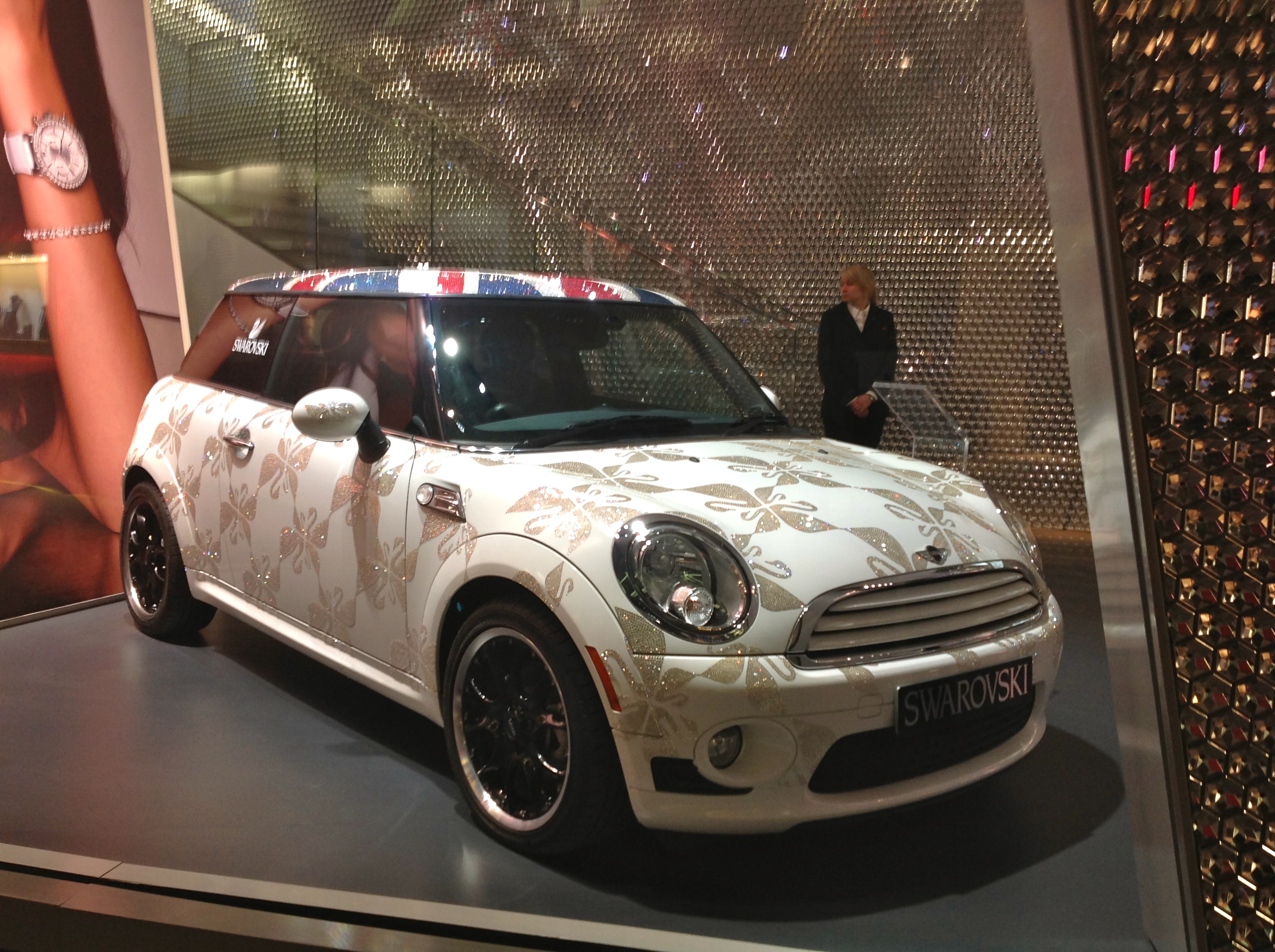 Nello stand dell’azienda austriaca un esemplare unico: no, non è un orologio o un gioiello da indossare, ma una Mini, unica, ideata e realizzata per un royal wedding. Migliaia e migliaia di swarovski per decorare la vettura con il cigno, il logo della casa e sul tetto la Bandiera inglese. Impensabile di passare inosservati…