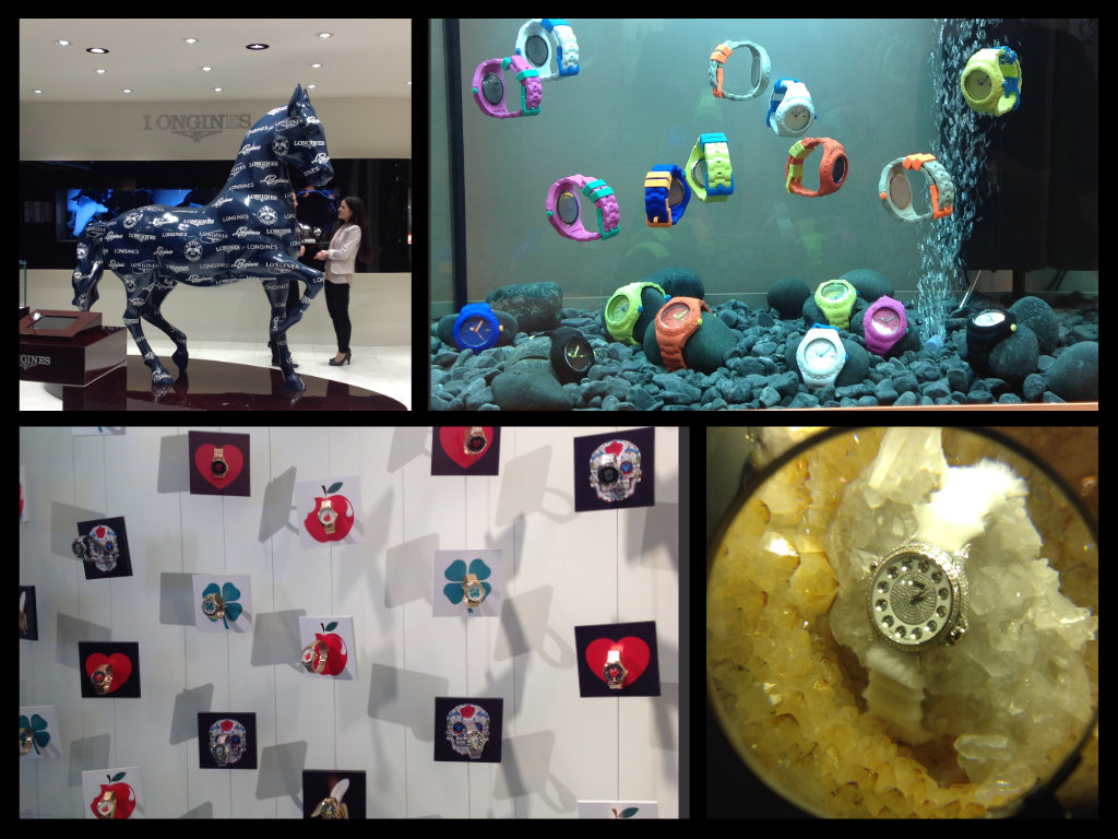 Di fantasia i vetrinisti, pardon i creativi, dei vari Marchi ne hanno da vendere. Come nei negozi, anche negli stand le vetrine, interne o esterne, sono una calamita. Ne abbiamo fotografate alcune, tanto per dare un’idea di questa Fiera del tempo universale; e qui ci sarebbe da discutere se l’aggettivo universale renda meglio l’idea se collegato alla Fiera oppure al Tempo.