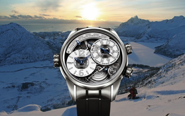 L’orologio con movimento meccanico Breva 02, che è in grado di registrare i cambiamenti della pressione atmosferica e quindi quelli delle condizioni del tempo, il 3-4 maggio era al polso di Jean Nicolas Michaud, che a Verbier ha un negozio di orologi.