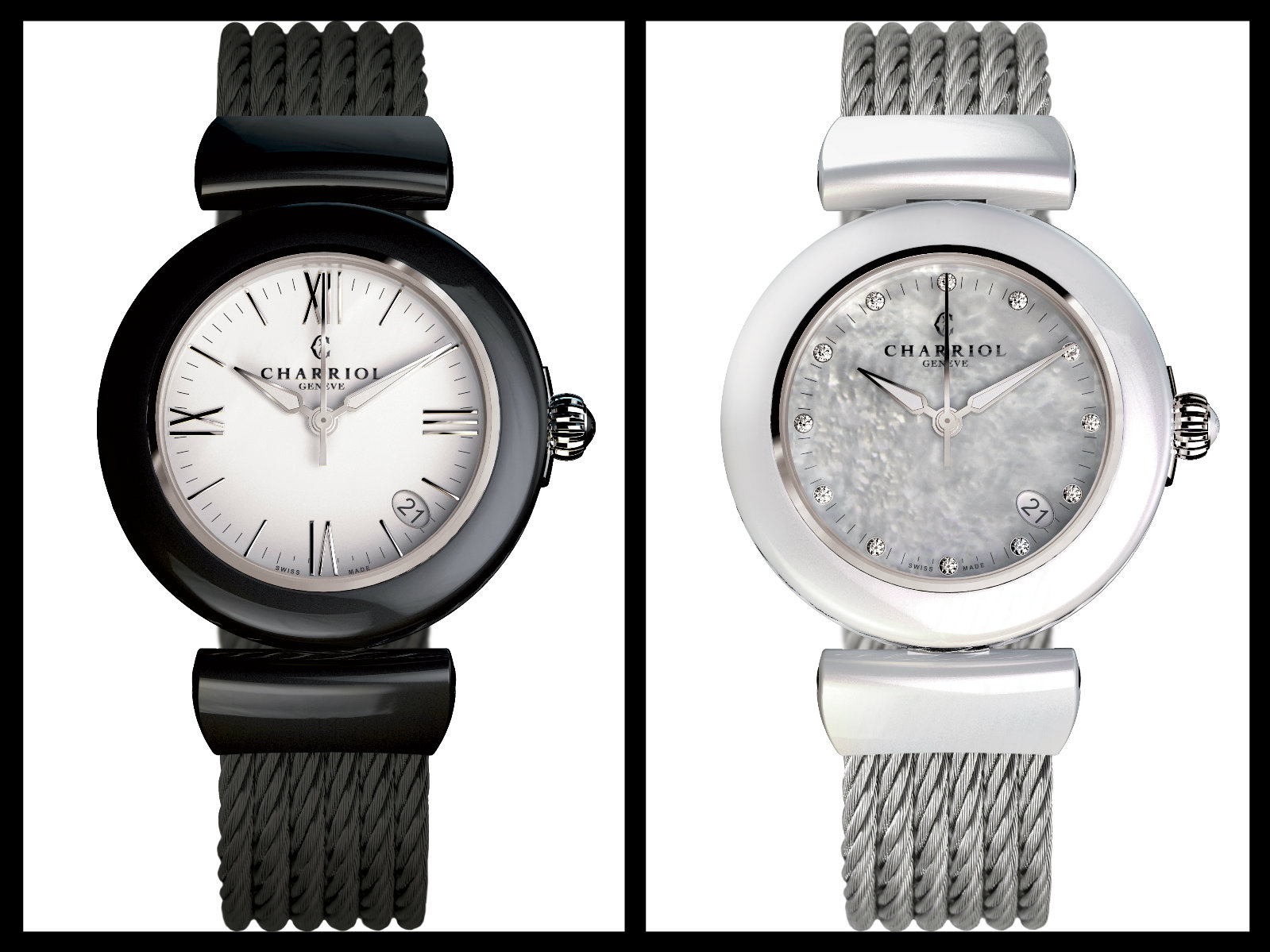 Alway with the iconic stainless steel cable bracelet, new Charriol AEL (celtic angel) have ceramic case, on silver o motherpearl dials roman or zirconia indexes. Colours? White or black.