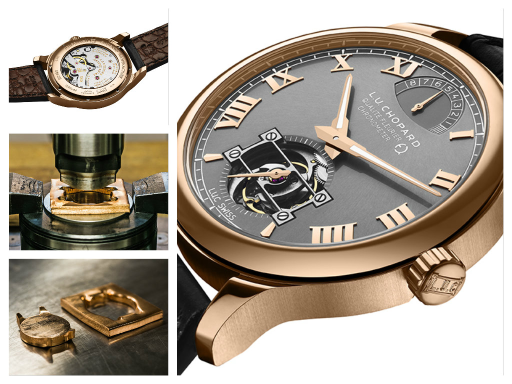 Chopard impiega l’oro Fairminded nella sua gioielleria, ma quest’anno a Baselworld, oltre al L.U.C. 1963 Tourbillon, dedicato all’anniversario della sua presenza in orologeria, ha realizzato con questo oro certificato anche 25 esemplari del L.U.C. Tourbillon QF, che è diventato il primo orologio d’oro “Fairminded”. L’oro della cassa, ø 43 mm, del fondello e della lunetta, proviene infatti da un piccola miniera del Sud America che ha aderito ad ARM; sul quadrante in rutenio anche l’indicazione della riserva di carica (216 ore pari a 9 giorni), il movimento, a tecnologia Quattro, è a carica manuale e ha il certificato COC di cronometro.