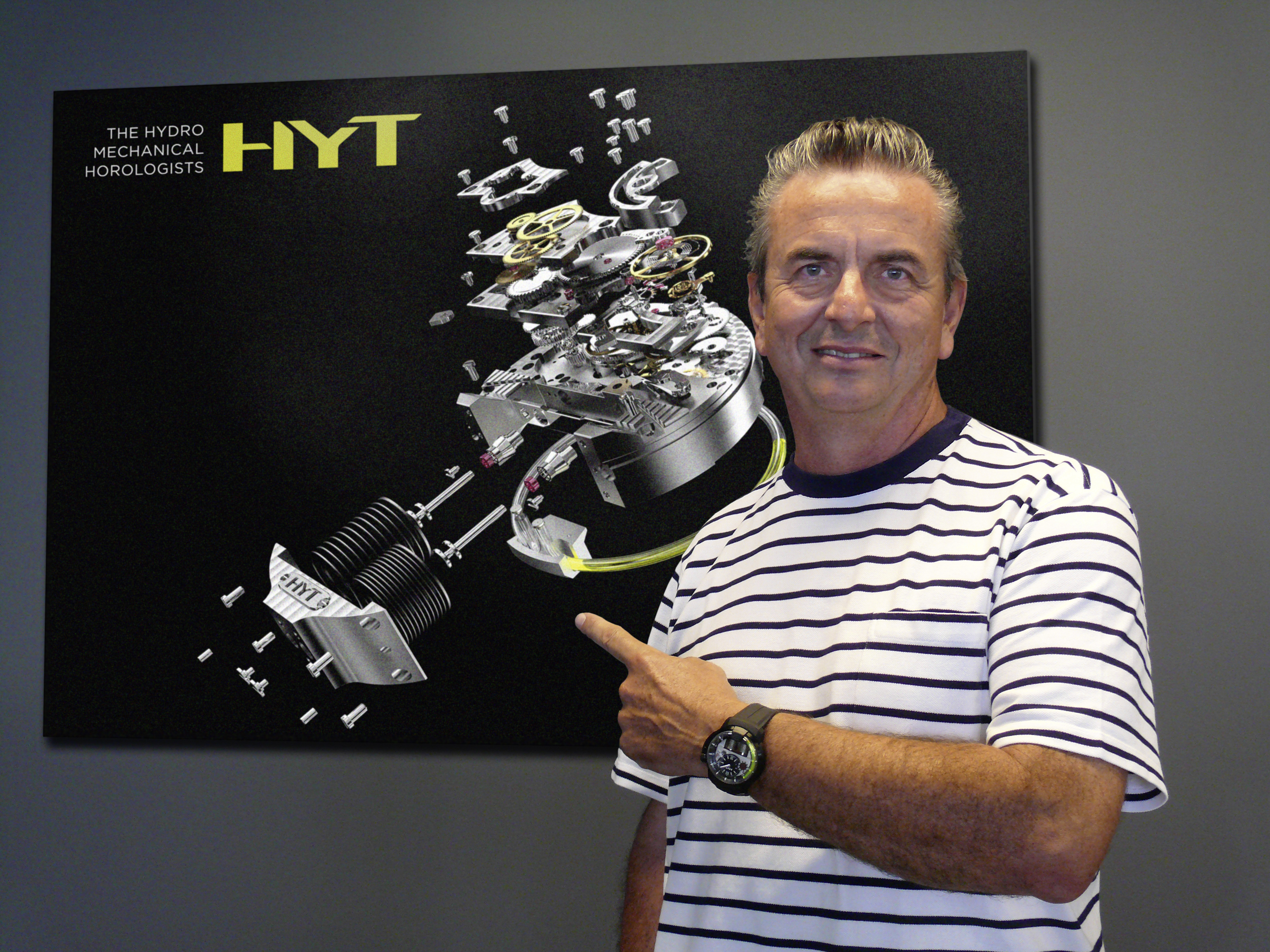 Oggi, nella nuova sede HYT a Neuchatel, si occuperà di sviluppare la produzione di questo giovane marchio dirigendo il Department Fine Watchmaking and Special Projects. I programmi dell’azienda, fondata da Patrick Berdoz, Lucien Vouillamoz, Emmanuel Savioz e di cui è CEO Vincent Perriard, sono ambiziosi: si pensa di arrivare a produrre quest’anno 500 esemplari, con una presenza in 45 punti vendita nel mondo, di aprire la filiale asiatica per servire quell’enorme mercato, di inaugurare due boutiques monomarca di cui una a Ginevra. Auguri dunque.