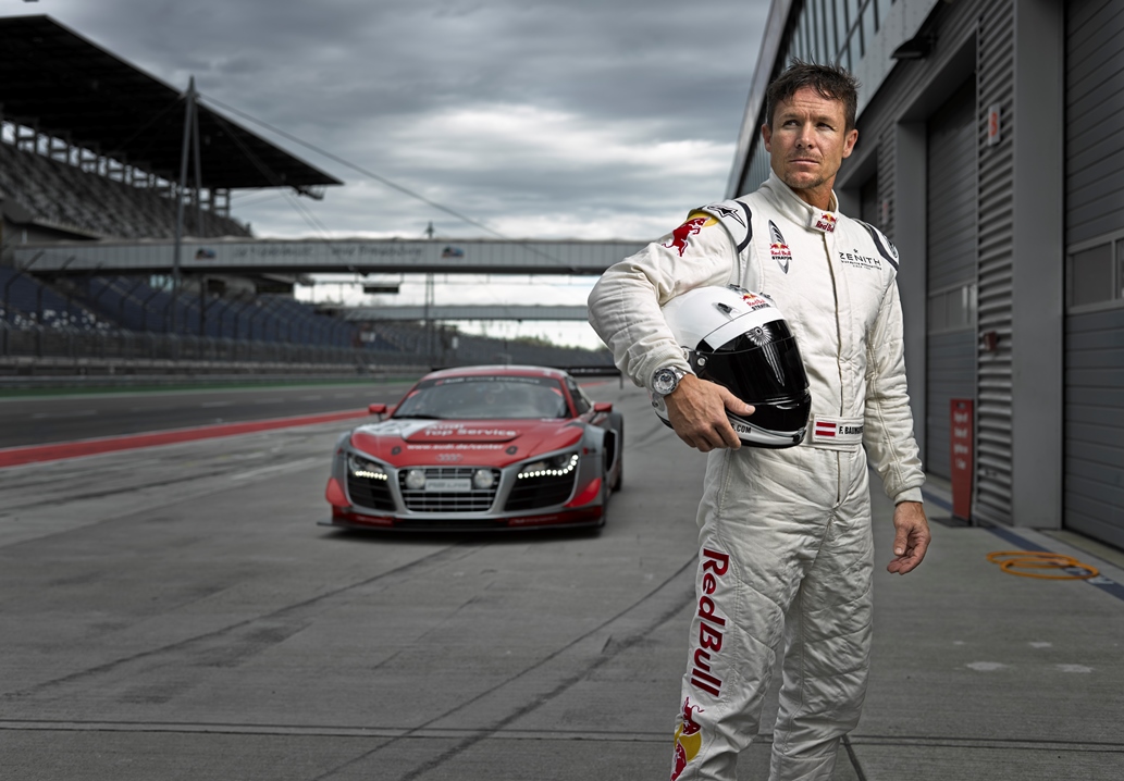 Felix Baumgartner, testimonial Zenith (prima della 24 Ore del Nürburgring) indossa il cronografo El Primero