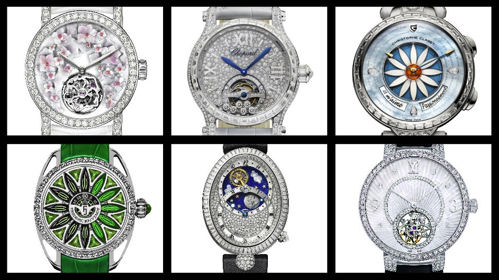 HAUTE MECHANIQUE POUR DAME: Chaumet Hortensia Tourbillon; Chopard Happy Sport Tourbillon; Christophe Claret Margot; Frèdéric Jouvenot Surya; Breguet Reine de Naples Jour et Nuit; Louis Vuitton Tambour Tourbillon