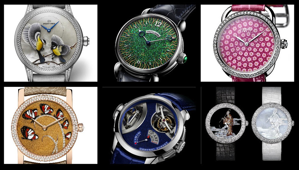 METIERS D’ART: Jaquet Droz Petite Heure Minute Relief Saisons; Voutilainen Hysul; Hermès Arceau Millefiori; Chaumet, montre précieuse “attrape moi… si tu m’aime”; Greubel Forsey Art Piece n°1; Chanel Twin Volute Enchantée