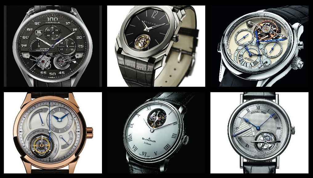 TOURBILLON: TAG Heuer Carrera MikroPendulum T; Bvlgari Octo Finismmo T.; Montblanc Villeret Exo T rattr.; Gronefeld Parallax T; Blancpain T.vol. 1′ 12 jours