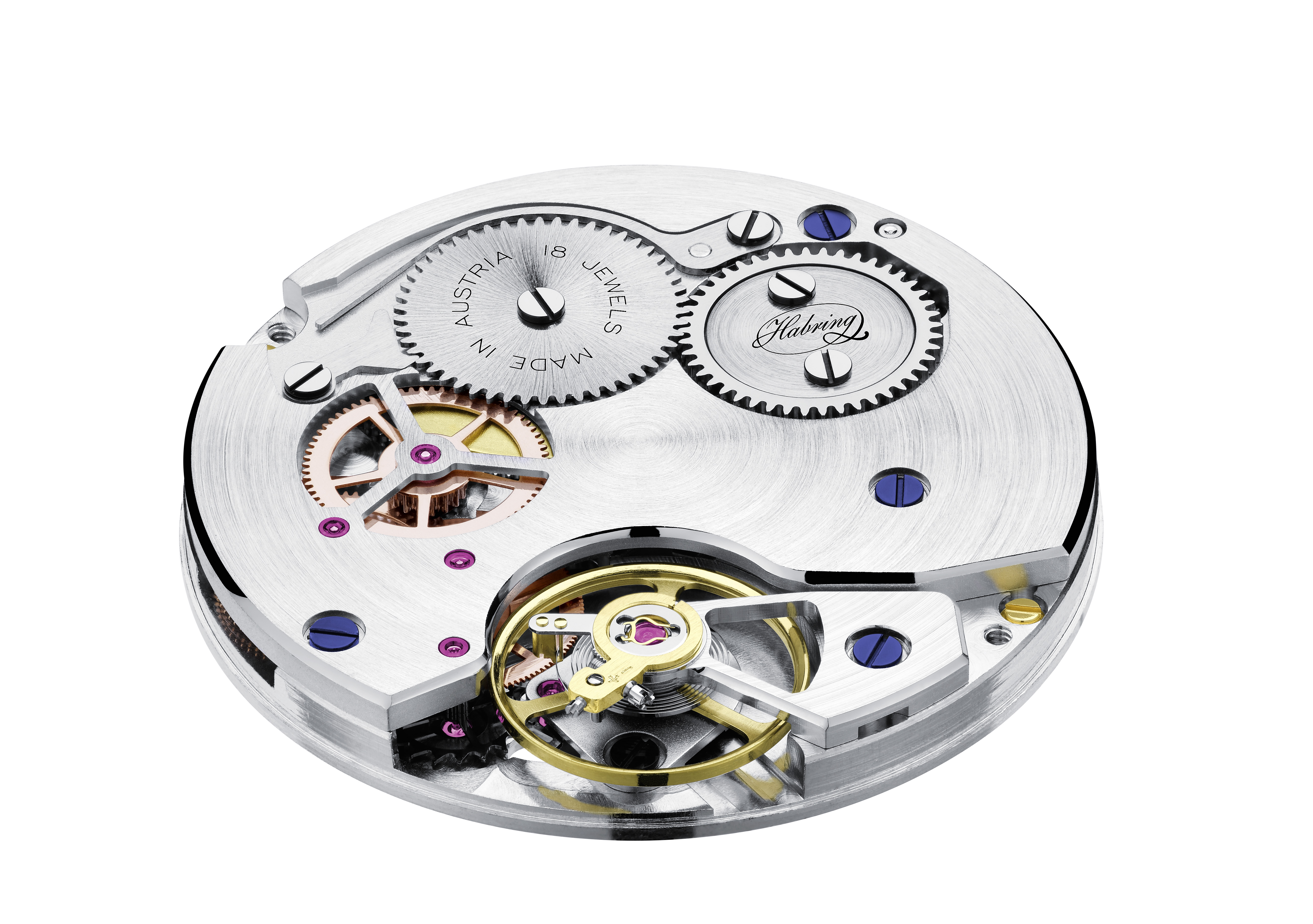 Spesso i laboratori artigianali montano ponti su ébauches prodotte industrialmente, lo ha fatto anche Habring con i Valjoux ETA 775o/7760, ma le restrizioni nelle forniture hanno portato all’A11 (la cifra è quella dell’anno in cui Richaard e Maria hanno iniziato a progettarlo). Il design è nuovo, il movimento è prodotto da Habring Uhrentechnik OG con l’aiuto di poche altre aziende austriache, tedesche e svizzere specializzate nella componentistica. Ancora, spirale, combinazione ruota/pignone sono comunque rifiniti e assemblati a Völkermarkt. Per dare un’idea dell’impegno per impiegare le spirali necessarie alla produzione di un mese è necessaria un’intera giornata di lavoro. La quantità prodotta pian piano andrà a sostituire la precedente, consentendo al Felix di essere classificato “di Manifattura”, rimanendo però sempre nel novero di una produzione artigianale. Il nuovo Calibro non ha il sistema modulare Habring² e rappresenta una base, mantenendo l’accuratezza della precisione. I moduli funzionali sino ad ora basati su ETA saranno esauriti e sostituiti in futuro da elementi brevettati.