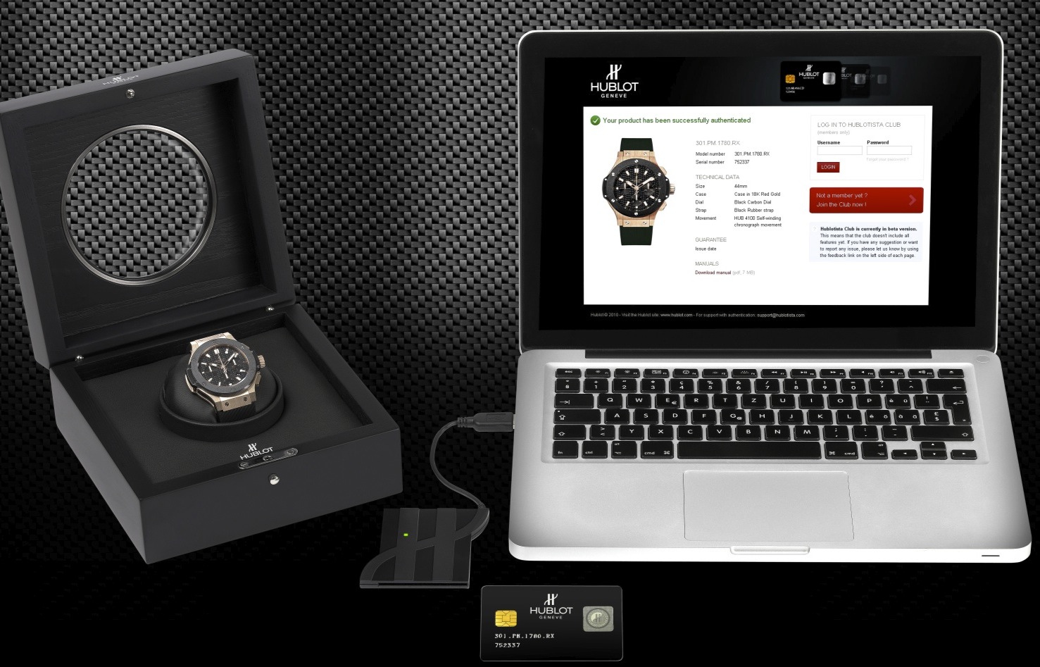 Oggi invece è arrivata una notizia che interessa tutti i proprietari di un Hublot. Al World Economic Forum a Davos mr Biver ha confermato la collaborazione tra Hublot e Wisekey per garantire identificazione, autenticità e protezione degli Hublot. Tutti gli orologi infatti vengono dotati della Hublotista chip card e della reader card, passaporti che si leggono in rete. La chip card è disposta con il suo lettore nella cassa dell’orologio; nella boutique, dopo che il cliente ha acquistato il modello, il rivenditore, identificato con la sua carta collegata alla sede centrale del Marchio in Svizzera, attiva la garanzia internazionale. L’acquirente può quindi registrarsi sulla piattaforma Hublotista.com, un club riservato esclusivamente ai proprietari di un modello Hublot e che garantisce l’anonimato. La combinazione chip e lettore è un sistema impossibile da riprodurre, accentuando la protezione degli orologi contro raggiri e incauti acquisti. Le 69 boutique e i 750 rivenditori Hublot nel mondo sono dotati del sistema per leggere e attivare il certificato digitale.