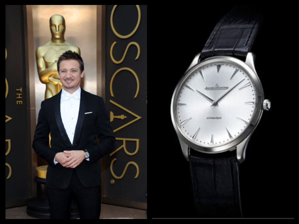 Comunque a meno di 24 ore dalla consegna delle celebri statuette, sono arrivate in redazione delle fotografie di un Jaeger-LeCoultre tramite Image Net. Al polso dell’attore produttore Jeremy Renner spuntava infatti un Mastser Ultra Thin 41 automatico, con la cassa in oro bianco, sobrio e molto elegante.