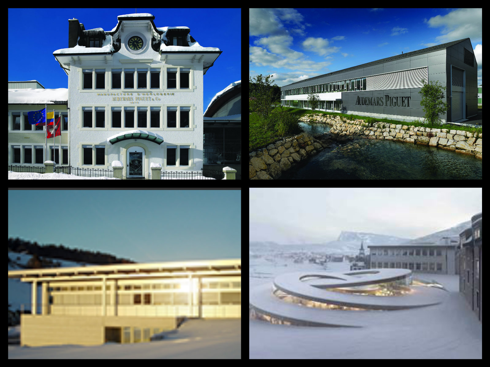 A Le Brassus Audemars Piguet ha avuto la sua prima fabbrica, tuttora esistente. Agli inizi era anche l’abitazione dei proprietari, secondo il costume dell’epoca. Nei primi anni Novanta c’era, a poca distanza, uno dei tre atelier di Gerald Genta; dopo la vendita di questo marchio a Hour Glass, l’edificio è stato acquistato da Audemars PIguet, ospitando un primo museo, poi ampliato nel 2004. Sempre nel XX secolo sono state costruite sedi di produzione a Le Forges e a Le Locle, dove è operativa Audemars Piguet (Renaud&Papi) SA che studia e produce movimenti per Audemars Piguet e anche per altri Marchi. A Le Brassus adesso è in programma un interessante progetto per una nuova struttura elicoidale che si inserirà nel paesaggio della Vallée de Joux. Lo studio di architettura BIG amplierà gli edifici storici; la costruzione si chiamerà La Casa dei Fondatori e su una superficie di 2400 mq accoglierà il ricco patrimonio di orologi d’epoca del Museo, spazi per riunioni e incontri anche con il pubblico, laboratori artigianali.