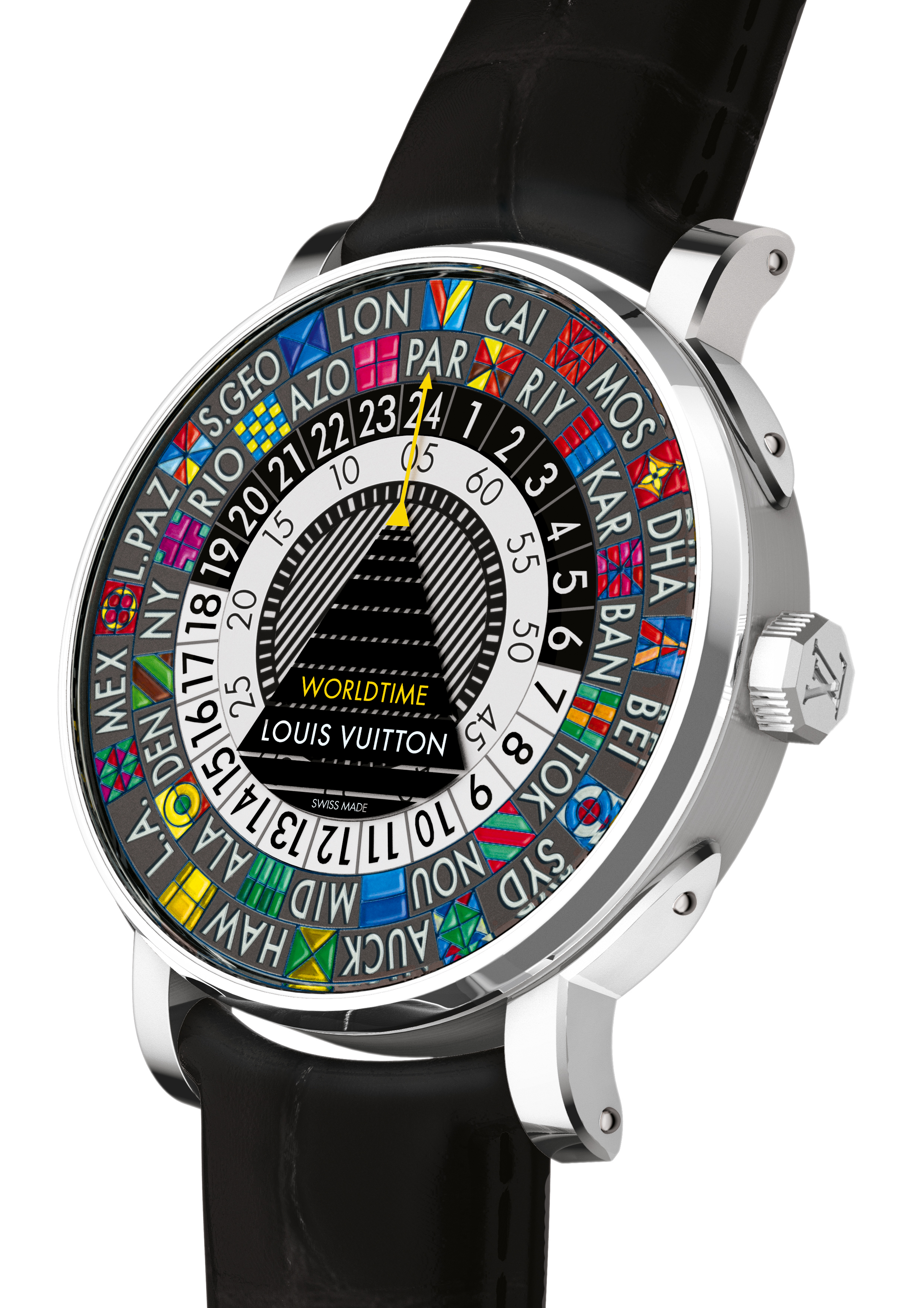 L’Escale Worldtime, la novità clou, ha un quadrante decisamente innovativo. “È dipinto in house con vernici a olio e poi asciugato in forno a 100°– precisa Chatti – occorrono 50 ore per completarlo, sono poche le Marche che hanno al loro interno questi artigiani specializzati”. Poi spiega come a La Chaux-de-Fonds, nella Fabrique du Temps Louis Vuitton, i reparti ricerca e sviluppo siano impegnati a tutto campo anche per nuovi materiali come per esempio l’ossido di alluminio nella cassa del Tourbillon volant e di altri modelli.