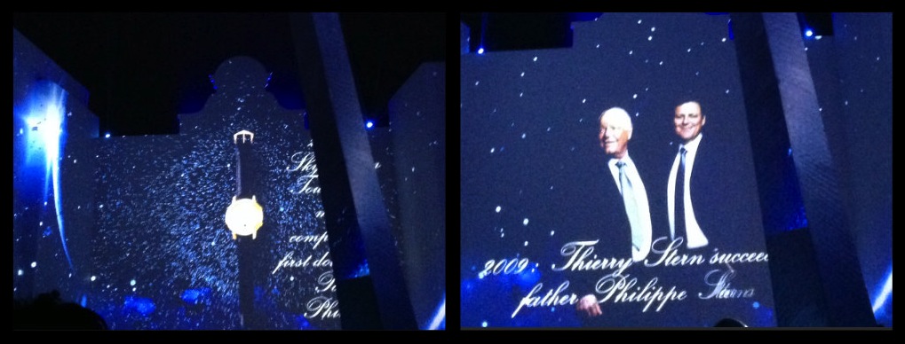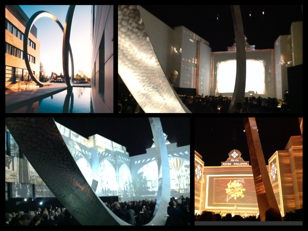 L’ingresso alla Manifattura con la scultura della spirale era irriconoscibile: la fontana è stata coperta e tra i due edifici è stato steso un soffitto-cielo con le stelle; sul fondo e sui lati sono stati proiettati filmati di una storia lunga 175 anni; al centro di questo teatro gli ospiti, trasportati in un mondo fantastico di immagini e suoni. Philippe Stern, presidente ad honorem ha riassunto cinquant’anni di vita orologiera, lasciando poi la parola al figlio Thierry, presidente della Maison; frasi di affetto e di orgoglio e al termine l’assicurazione che la Patek Philippe resterà un’impresa a conduzione familiare e che già da quest’anno si sta pensando all’orologio del 200° (per la Ref.5175 gli anni di preparazione sono stati sette).