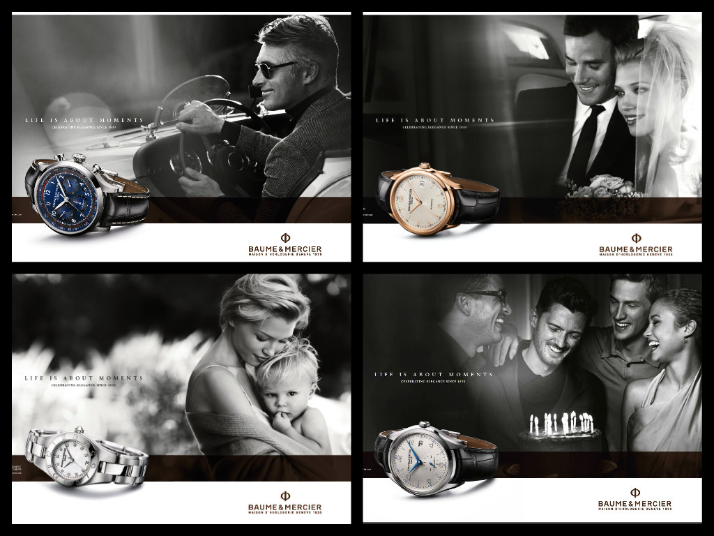 Infine la pubblicità sulla carta stampata, croce e delizia di editori e direttori, ha avuto un concorrente temibile nella TV, soprattutto per orologi destinati a un vasto pubblico, e poi in rete, perché i siti delle Case informano, sia pure solo come splendidi cataloghi, su tutta la produzione. L’atteggiamento delle aziende verso l’web sta cambiando. C’è chi non lo considera e ognuno in casa sua è padrone di scegliere, c’è invece chi come Baume&Mercier vi si è convertito impostando una campagna “on e off line” con fotografie di Peter Lindbergh, che illustrano i sentimenti di un regalo (un Linea, un Capeland, un Clifton) scelto per una ricorrenza familiare.