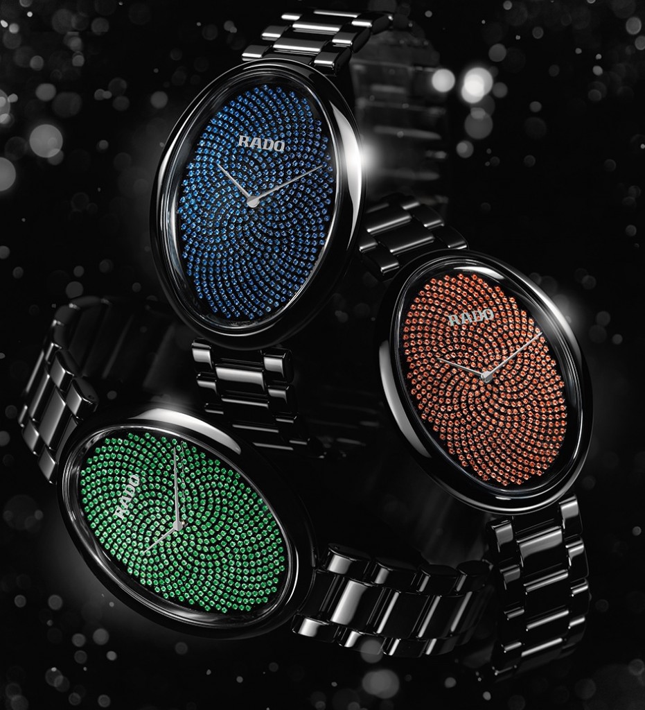 Rado Essenza Ceramic Touch collezione Fibonacci Colours; 300 gli esemplari di questa tiratura impreziosita con zaffiri blu, arancione o granati verdi