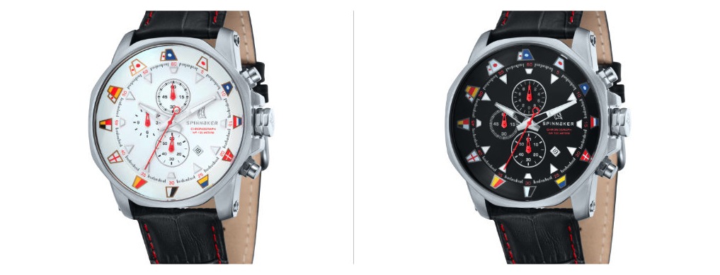 Oggi invece questa decorazione appare anche su orologi, sotto i 500 Euro. Spinnaker propone cronografi in acciaio cassa ø 45 mm, anche trattata con finitura gold, sub a 100 m, vetro minerale, movimento al quarzo giapponese, cinturino in pelle in vari colori abbinati a quelli delle indicazioni orarie.