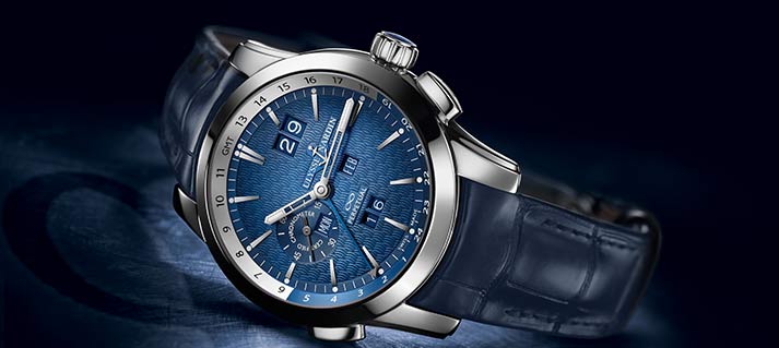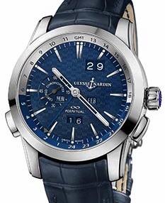 Da pochi mesi Ulysse Nardin fa parte del Gruppo Kering, naturalmente gli orologi presentati quest’anno appartengono alla precedente gestione, ma sono l’indicazione che la Marca continua nel suo cammino anche con la nuova proprietà. Un altro orologio importante è il Perpetuale Calendar Manufacture (in 250 esemplari riservati alle boutique Ulysse Nardin) che in blu ha il quadrante; la cassa, ø mm 43, è in platino o oro rosa. Dotato di secondo fuso orario a regolazione rapida e gran data, il Calibro UN-32 regola il Q.P. ruotando avanti o indietro la corona di carica.