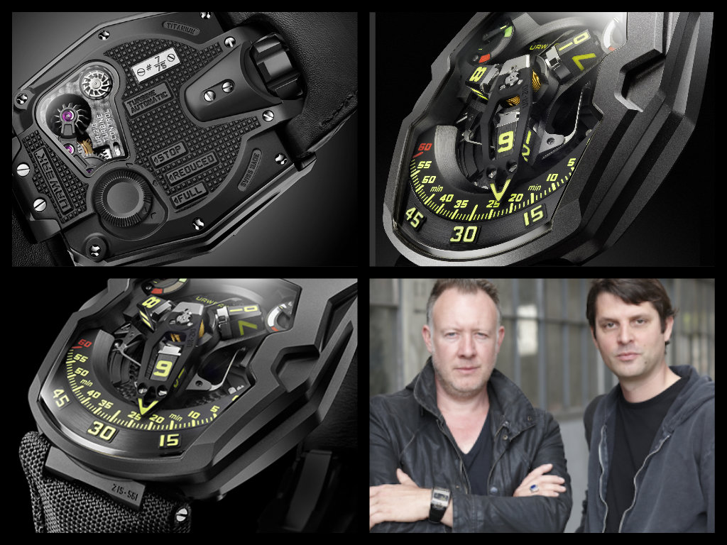 Con la cassa in titanio e acciaio trattato AITIN, mm 43,8×53,6 e superfici satinate, micro sabbiate, diamantate, è uno degli orologi più imponenti e necessita di un polso adeguato. Il movimento è il Calibro UR-7.10 con 51 rubini, 28.800 A/h, un solo bariletto. La corona è sul retro. Diversi sono i metalli e le leghe impiegati: ARCAP P40 per la platina, alluminio per il satellite delle ore e per i minuti con contrappeso in ottone, acciaio per la molla cilindrica centrale, titanio grado 5 per il carosello centrale e le viti.