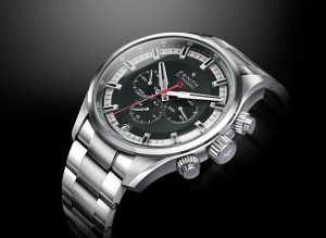 Però a fianco dell’asso pigliatutto c’è anche un’altra novità interessante: il nuovo Elite 6150. Ancora la lucentezza dell’acciaio per l’elegante e sottile cassa, ø 42 mm, con fondo in vetro zaffiro, quadrante argenté, indici geometrici e lancette a bastone. Al suo interno il nuovo Calibro automatico 6150; quello precedente lo ricordiamo, fu presentato nel 1994 e la sua autonomia era di circa 55 ore. L’attuale, ø 30 mm, secondi al centro e spessore di mm 3,92, ha 100 ore di riserva di carica grazie ai due bariletti.