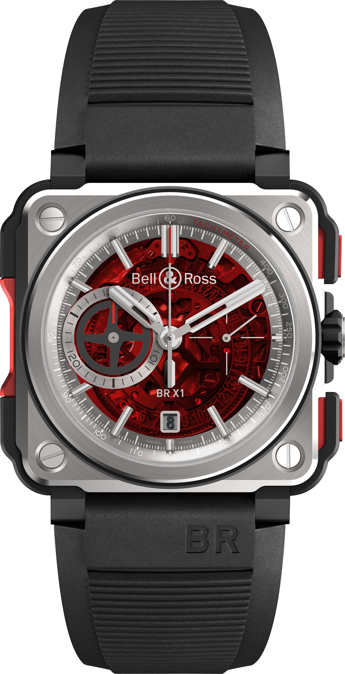 BRX1- red skeleton selfwinding chronograph with case in titanium and ceramic, 45 mm, is a limited edition, 50 watches sold only in boutique)