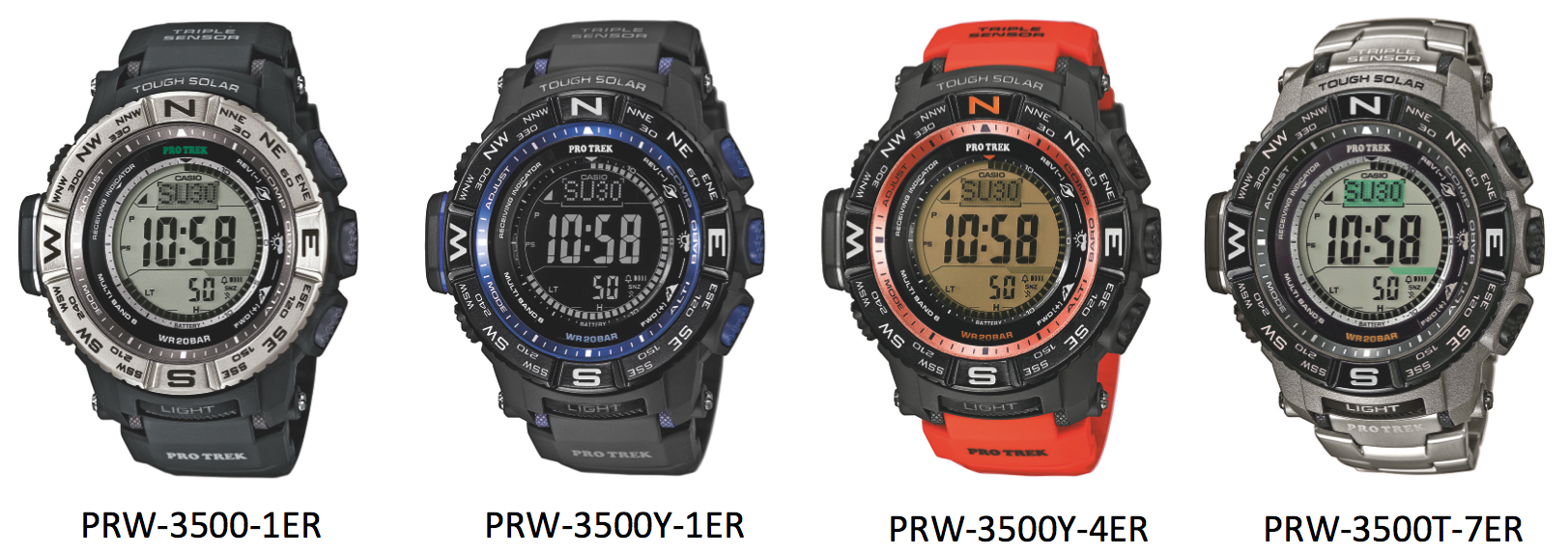 Tra le caratteristiche principali di questo multifunzione il Triplo Sensore Ver.3, bussola digitale, altimetro, barometro/termometro; l’orologio è radiocontrollato (fino a 6 ricezioni al giorno) e a luce solare; la funzione Power Save lo fa spegnere in mancanza di luce conservando l’energia. La cassa è in titanio, sub a m.200, LED illuminano il quadrante e il display LCD, pulsati sovradimensionati, bussola, barometro, lunetta direzionale, indicazione ora di 31 fusi orari; cinturini in resina o bracciale in titano.