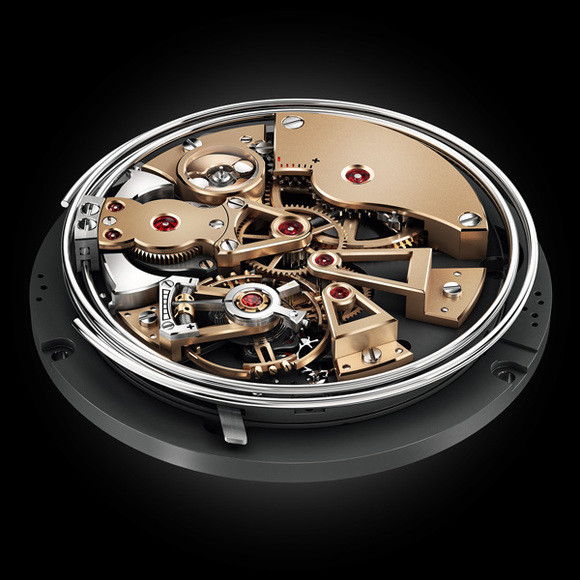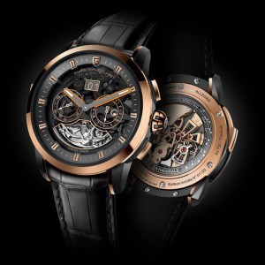 Allegro, coperto da brevetti, riflette la tradizione classica europea dell’alta orologeria. Il movimento manuale, Calibro ALG89, ha 520 componenti, 39 rubini e 21.600 A/h. Dal quadrante si vedono gli elementi più interessanti, compresa la ripetizione minuti con timbri a cattedrale appositamente studiati per impedire suoni eccessivi. Realizzato in 20 esemplari, ha la cassa (ø 45 mm) in oro rosa o bianco e titanio grado 5 PVD grigio antracite, vetro zaffiro fumé o con metalizzazione opaca grigio ardesia.