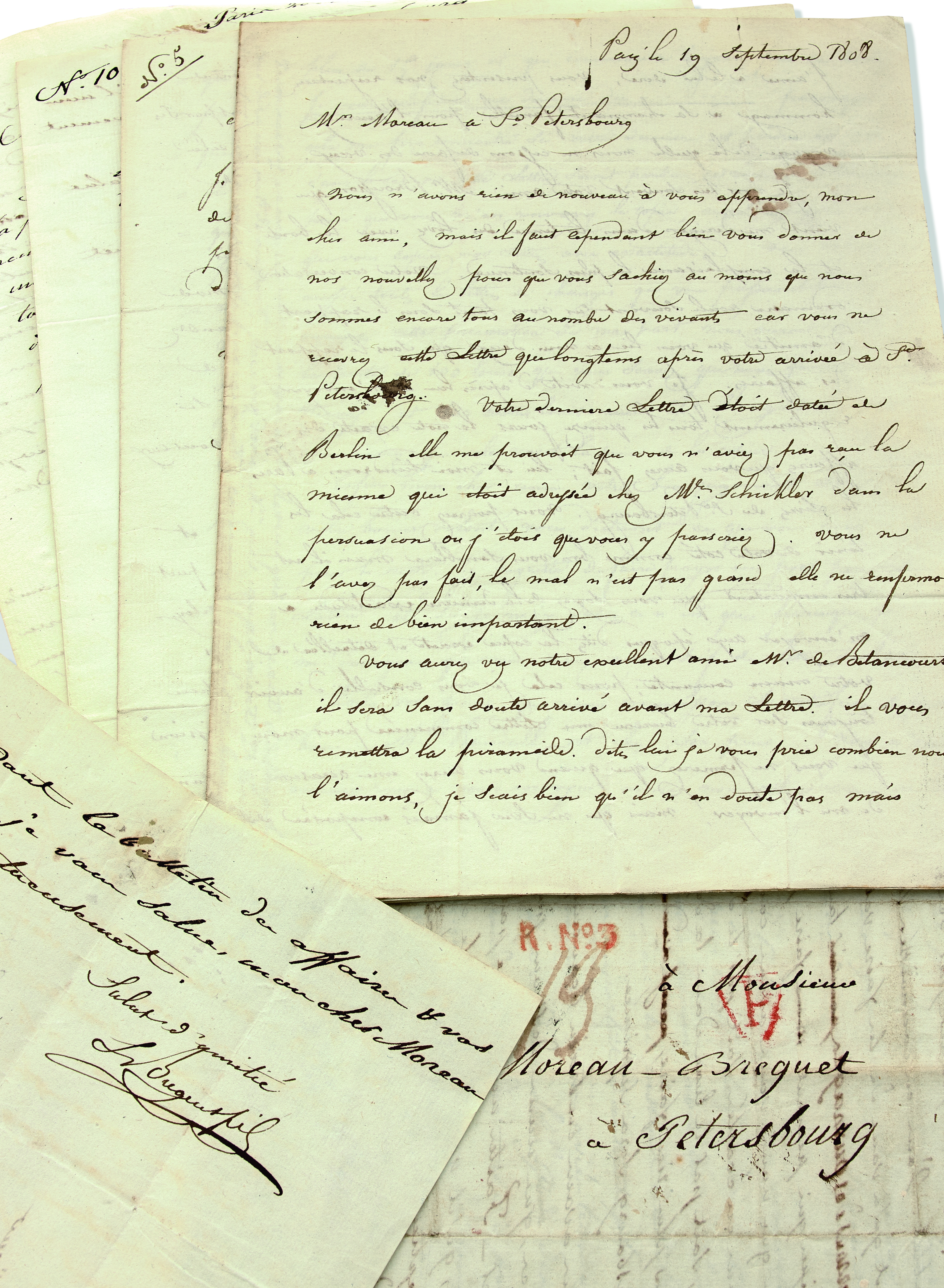 Oltre a un pacchetto di lettere, scritte in Russia fra il 1808 e il 1810 e contenenti riferimenti storici sull’apertura di una vera e propria succursale a San Pietroburgo, anche degli orologi. Fra questi il n°3104, un pezzo molto interessante che fu venduto nel 1818 all’Infante di Spagna Francisco de Paula, Conte di Moratalla e rimase per oltre un secolo proprietà di una famiglia di nobili europei.