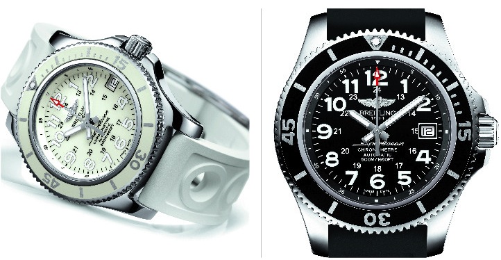 Orologi Professional per eccellenza i Breitling sono per lo più identificati con modelli da uomo. Non mancano però le eccezioni come il Superocean II ø 36 mm (sub a 200 m.) che, insieme alle versioni 42 e 44 mm (rispettivamente sub a 500 e 1000 m.) si ripropone come indispensabile strumento professionale. affascina gli sportivi. che se in versione maschile è automatico con lunetta rivestita in caucciù che indica il conteggio dei 15 minuti di immersione ed è in caucciù con fori circolari anche il cinturino Ocean Racer. Sono disponibili anche il cinturino in caucciù Diver Pro, il bracciale in metallo o il cinturino in pelle. Il movimento è il Calibro automatico Breitling 17 certificato cronometro, 25 rubini, 28.800 A/h, i quadranti sono neri, oppure bianchi per il ø 36 mm e Blu Mariner per gli altri due.
