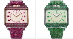 Dopo Baselworld De Grisogono ha presentato il New Retro maschile e adesso è la volta del New Retro Lady, sempre automatico e con la corona a ore 12 per poterlo indossare su entrambi i polsi: la cassa in oro o platino e pietre preziose (diamanti, zafffiri, smeraldi, rubini) con i colori coordinati al cinturino in glauca.