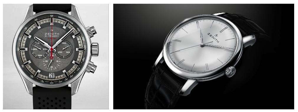 Sta per concludersi il 150° anniversario della Marca di Le Locle e non si può non riproporre il nuovo automatico Elite Calibro 61050 e la versione sport del suo celebre cronografo El Primero. L’Elite 6150 ha una riserva di carica di cento ore, la cassa in acciaio ø 42 mm, spessore 10 mm, ha una lunetta che riprende la bombatura del quadrante, il movimento ha uno spessore di mm 3,92, 28,800 A/h, 35 rubini e un doppio bariletto. Il cronografo El Primero Sport è equipaggiato con il celebre El Primero Calibro 400B con la cronografia integrata e 36.000 A/h (numerazione ripetuta in rosso sul quadrante). Cassa in acciaio ø 45 mm, quadrante argenté o ardesia con scala tachimetrica.