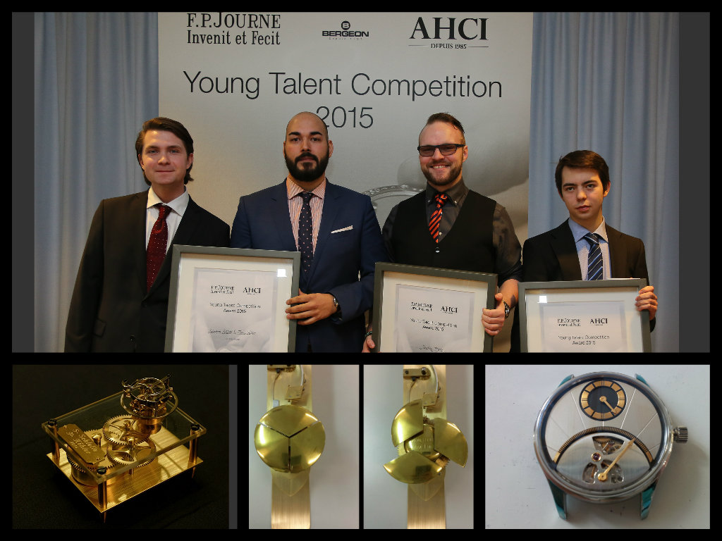 Per il 30° anniversario dell”Accademia degli orologiai creatori indipendenti Journe ha istituito in novembre un premio (aperto a 47 scuole di 14 nazioni) destinandolo a tre giovani orologiai. Oltre trenta concorrenti da 11 nazioni hanno inviato le loro opere; tre i premiati a Baselworld, anzi quattro perché due sono soci; oltre a un diploma hanno ricevuto tre assegni di € 3.000 offerti da Bergeon SA.