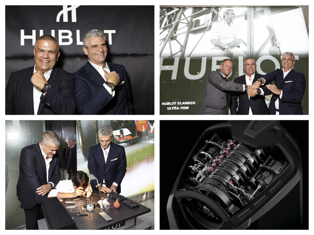 Per la gioia del brand manager in Italia, Augusto Capitanucci c’erano tutti i Big: Ricardo Guadalupe CEO di Hublot, Maurizio Arrivabene direttore sportivo della Scuderia Ferrari. che è anche il volto della nuova campagna Hublot per l’automatico, (un orologio elegante e discreto, ø 45 mm, movimento Hublot spessore mm 2,90) e persino Lapo Elkann che, lo ricordiamo, è stato l’artefice della prima partnership fra Hublot e la Ferrari presentata al Mugello da Jean-Claude Biver e Luca Cordero di Montezemolo nel 2011.