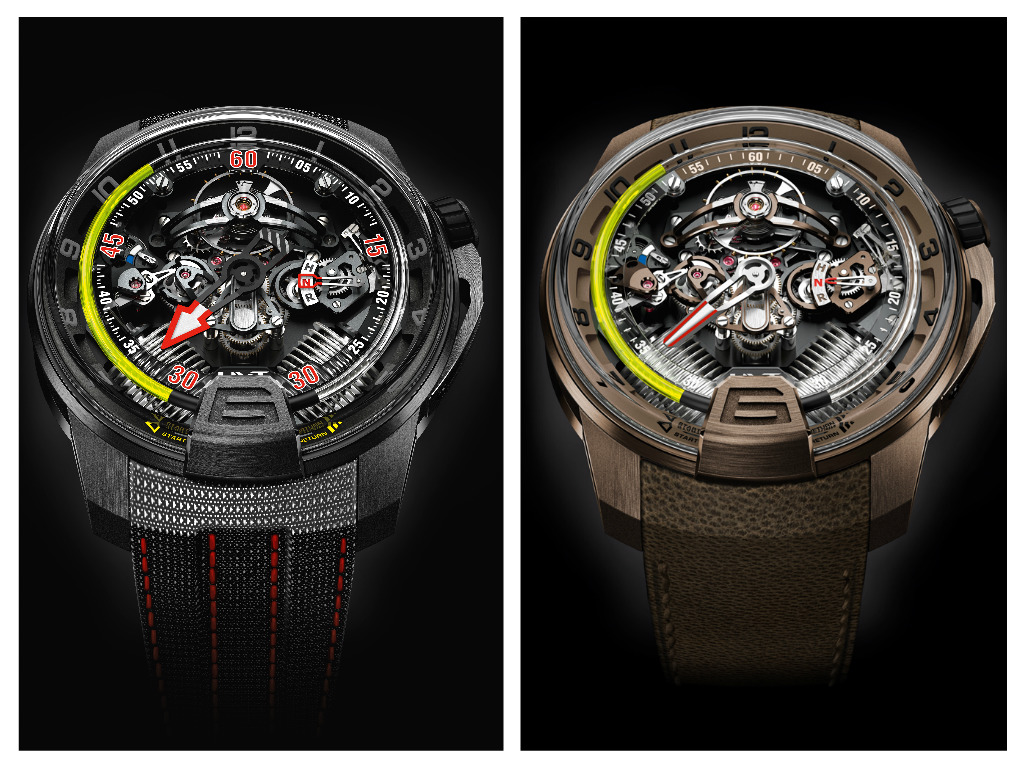 L’HYT 4, segue dopo poco tempo due versioni dedicate al mondo dell’aviazione. L’H2 Aviator (cassa ø 48,8) realizzato in 40 esemplari ha una nuova grafica per le indicazioni del tempo, con grandi numeri per i minuti 15, 30, 45 facilitandone la lettura, la lancetta centrale termina con una freccia rossa, alle ore 3, molto visibile anche l’indicatore delle funzioni H.N.R. a ore 3. Oltre alla versione nera trattata DLC ne è stata realizzata anche una bronzea.