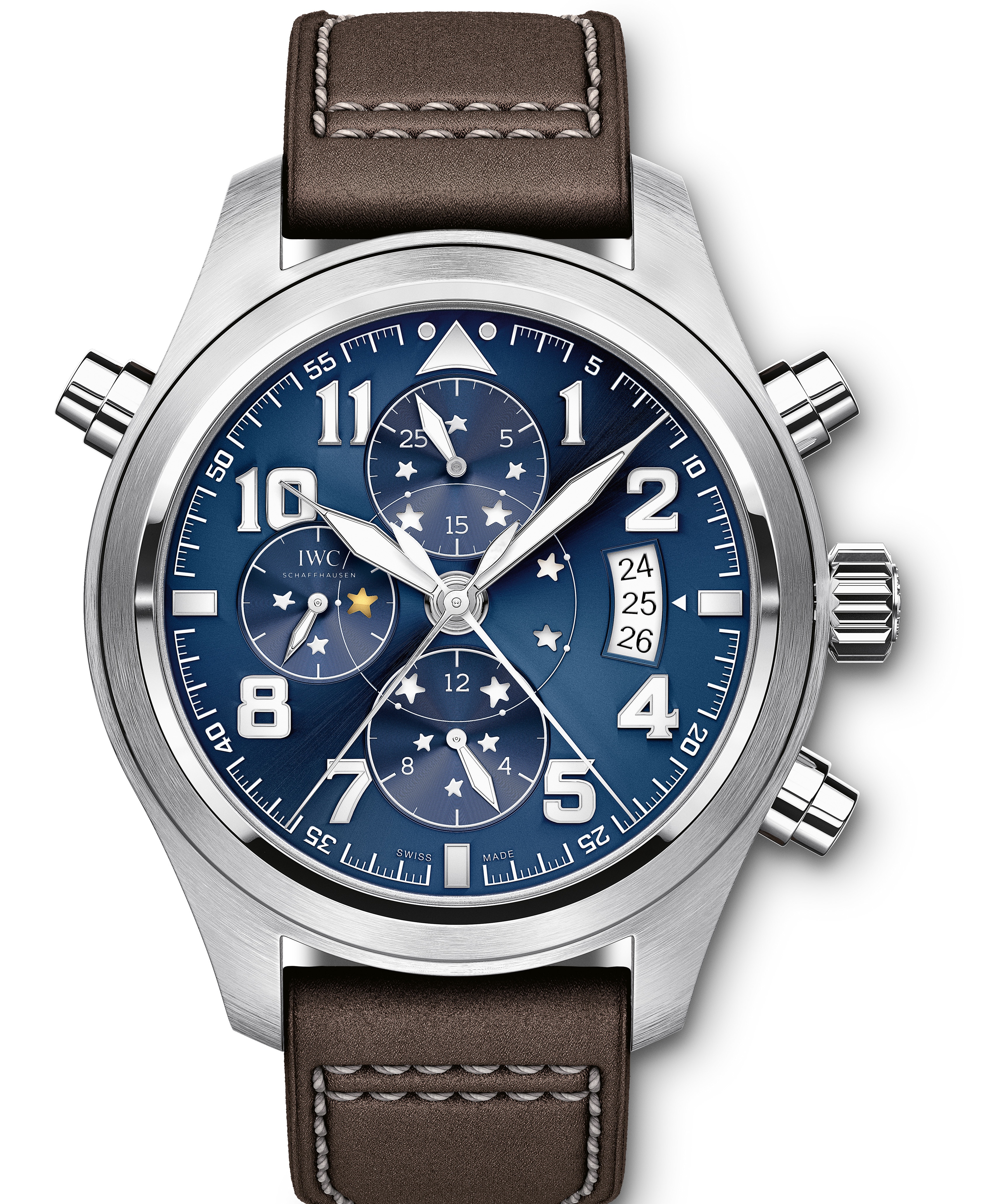 A new IWC double chronograph Le Petit Prince with 7 stars on the blu dial and on the back, remembering of the journey looking for a friend.