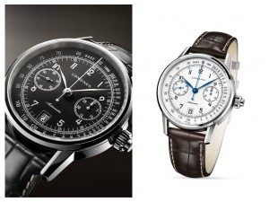 Due cronografi Longines realizzati nel 2015 ci riportano al passato interpretandolo modernamente; entrambi automatici hanno la cronografia monopulsante e ruota a colonne, uno ha la scala tachimetrica, l’altro la scala pulsometrica.