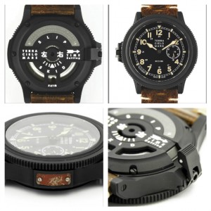 Zero-Sen, new TCM self-winding watch has the name of a Japanese airplane during II World War; no crown but a special system for winding and hour regulation by a rotating bezel.