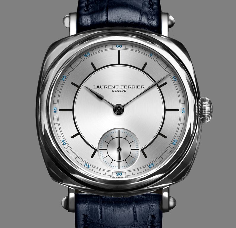 soloPolso inizia a pubblicare gli orologi offerti con un elegante Laurent Ferrier, il Galet Square, qui interpretato con una cassa in acciaio (mm 41×41) che tende alla forma cuscino, il quadrante con doppia lavorazione satinata ricorda lo stile fine anni Trenta, nello spazio riservato generalmente alla frase Swiss Made, spicca la scritta Only Watch 2015; le anse allungate e decorate sono state ideate appositamente; il movimento (Cal.FBN Cal 229) a carica automatica 3 gg di carica, microtore unidirezionale e scappamento con silicio e doppio impulso sul bilanciere con due ruote scappamento e un leva dal disegno speciale, è il terzo movimento meccanico che la Marca sviluppa e perfeziona in house.