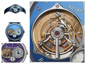 Il tantalio, che Journe usa per la prima volta in un Tourbillon Souverain, è una lega molto difficile da lavorare e che presenta riflessi azzurri. La storia orologiera ricorda un Royal Oak realizzato per un nobile inglese che voleva appunto un acciaio tendente al blu e dopo molti tentativi venne impiegato per la prima volta il tantalio. Il quadrante del Souverain è come uno specchio e presenta riflessi diversi a seconda della luce. Questa la scheda tecnica del pezzo in asta: cassa ø mm 40, movimento carica manuale in oro rosa, Calibro F.P.Journe 1403, composto da 179 elementi, 29 rubini, 21.000 A/h, la ruota scappamento presenta 15 denti speciale anche il bilanciere.