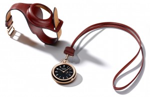 Per l’asta a favore della ricerca medica contro le miopatie, Hermès ha voluto ricordare le sue origini. Un morbido cuoio rossiccio ricorda il primo orologio da polso indossato nel 1912 da Jacqueline Hermès grazie a un “porte-oignon” che trasformava il pendentif, variante femminile del Tasca maschile, in un orologio da polso.