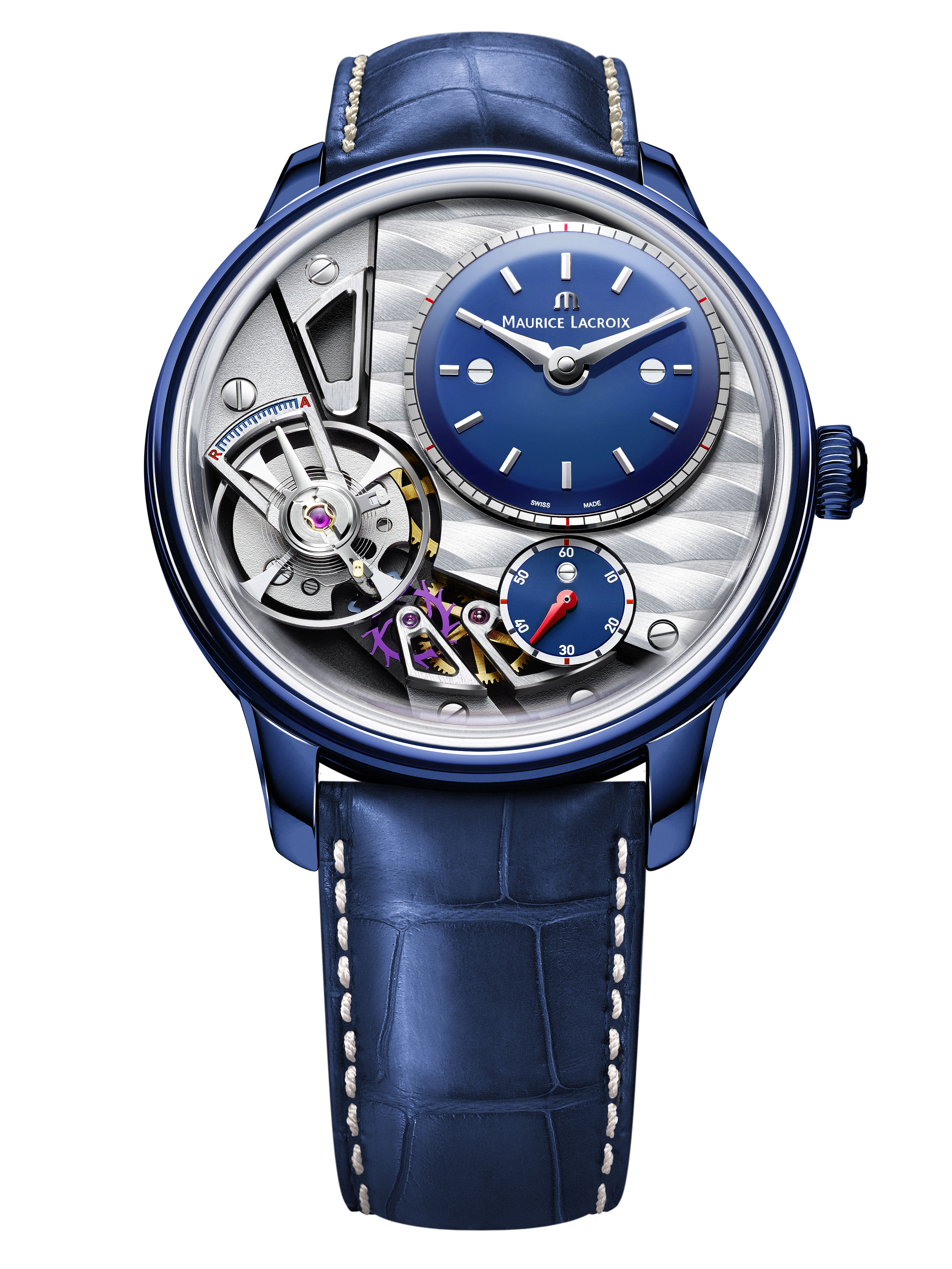 Masterpiece Gravity offered by Maurice Lacroix has special decoration and blue color, this collection launched last year has been chosen in 2015 for Brand’s 40° anniversary.