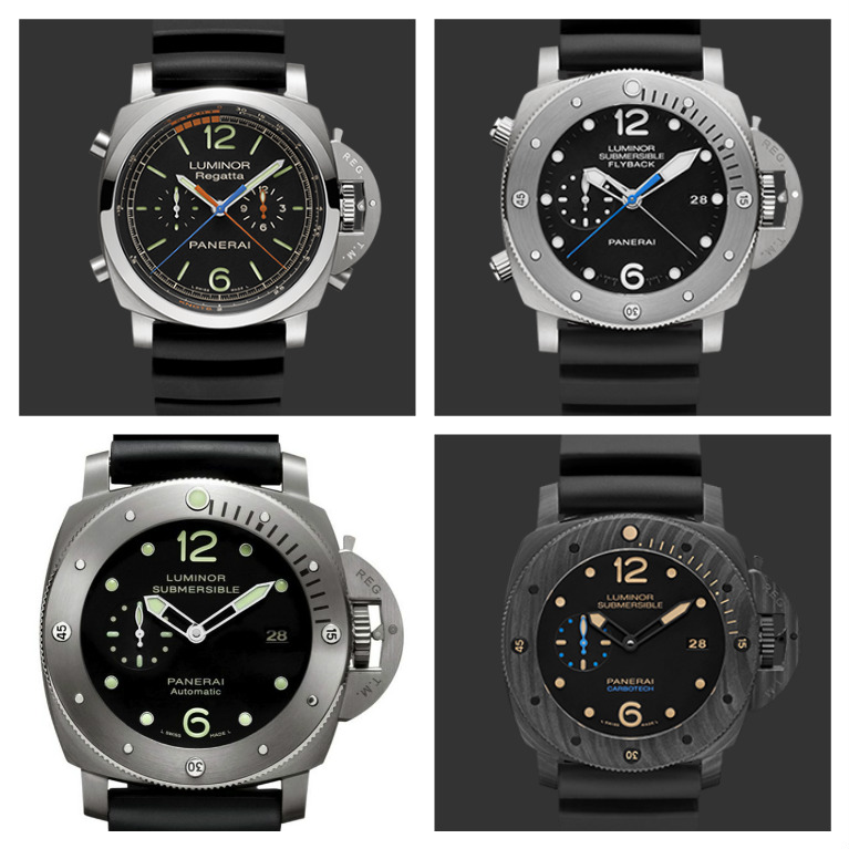 Luminor 1950 3 gg chrono Regatta con il count down, due Luminor 1950 Chrono sub a m-30o,. novità del 2015 in titanio o in carbontech e Luminor 1950 automatico PAM 571