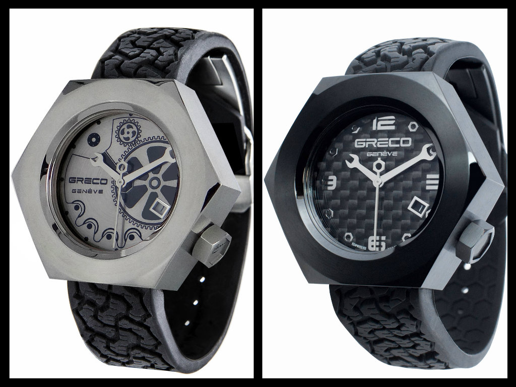 New Nut-Design for Greco Watches unveiled in Paris and Geneva (show-room Lamborghini just in front of Stépahen Greco’s workshop) in December. LTM-181 and LTM o41 (collection Les Temps Modernes) have ETA Caliber 2892, titan grade5 case and other details tied to industrial and cars world.