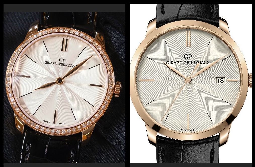 Nella collezione 1966, una delle più amate della Marca di La Chaux-de-Fonds, sono stati inseriti due orologi in oro rosa: uno maschile, ø 38 mm, movimento Calibro automatico di Manifattura Girard-Perregaux GP03300-00030-0M5A, e uno femminile, ø 30, lunetta con diamanti, Calibro automatico di Manifattura Girard-Perregaux GP03200-0005. Fil rouge tra i due i quadranti splendidamente lavorati a guillochage.
